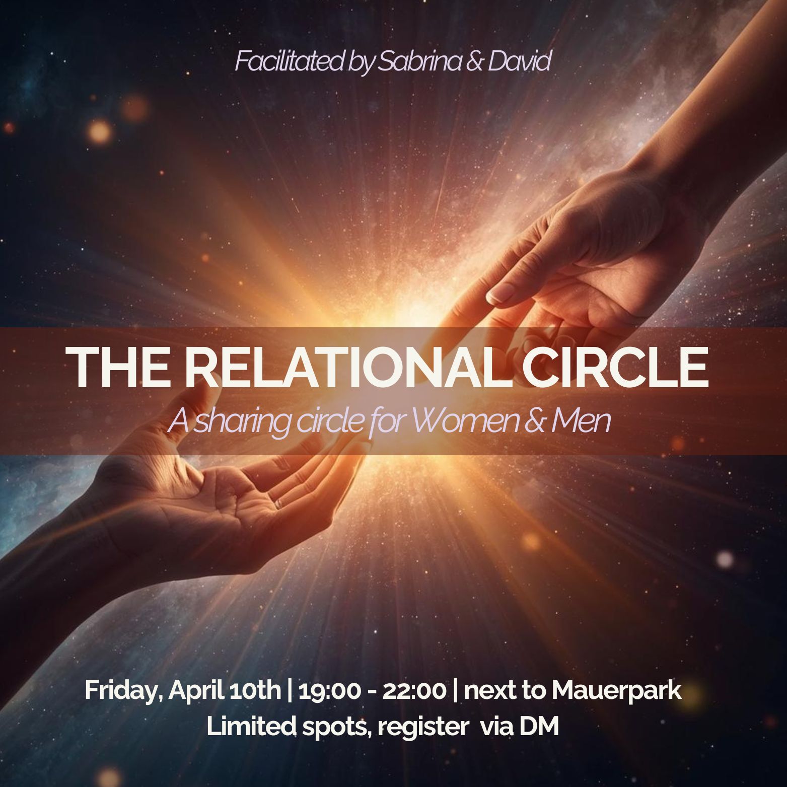 On April 10th, I am happy to co-organize the first “Relational Circle” for men & women with David, men’s circle facilitator. We will gather to share our hearts, to open to one another, and to deepen our understanding of and connection with the opposite sex.